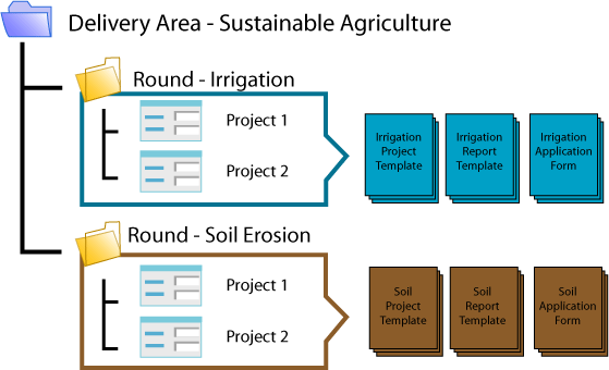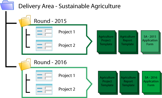 Your organisation may have sub-regional offices that manage and deliver their own suite of projects. Your Delivery Area would be assigned based on Sub-Region, then Round would provide the ability to assign groups of projects to sub-regional staff based on roles or project themes.