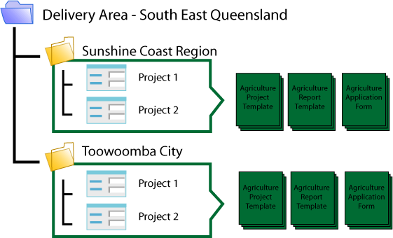 A Delivery Area in Enquire refers to a grouping of projects. For example, the Sustainable Agriculture Delivery Area groups all the Sustainable Agriculture related projects together. Another Delivery Area may group together all the Weeds projects. Other clients may currently use Delivery Areas to organise their projects into sub-regions.