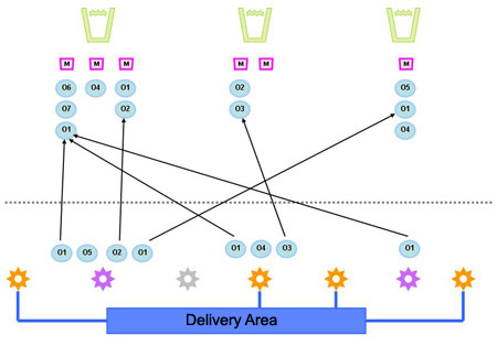 The diagram below shows possible relationships between a project and these two types of Delivery Areas. For more on Delivery Areas, and an example scenario, view the Create Delivery Area page.